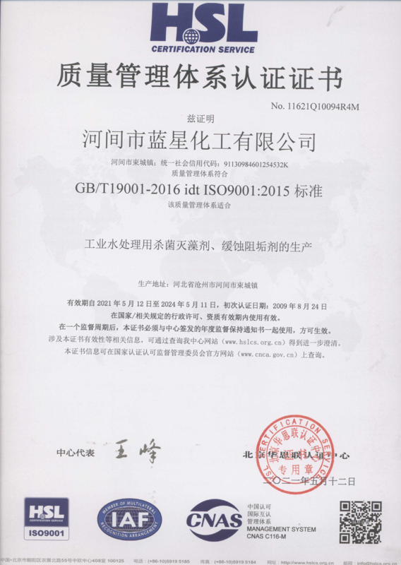 质量管理体系认证证书